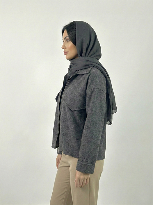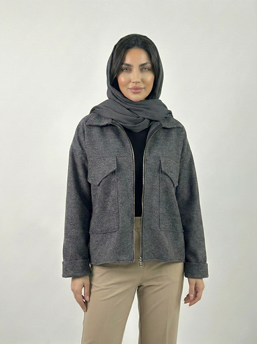 کت زنانه فوتر کوتاه رنگ مدادی دو جیب کد (8729)